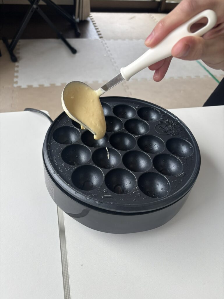 やけどしないように慎重に流し込んだり、回したり・・・。
